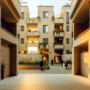 Cortile condominiale italiano con residenti che accedono alle parti comuni dell'edificio